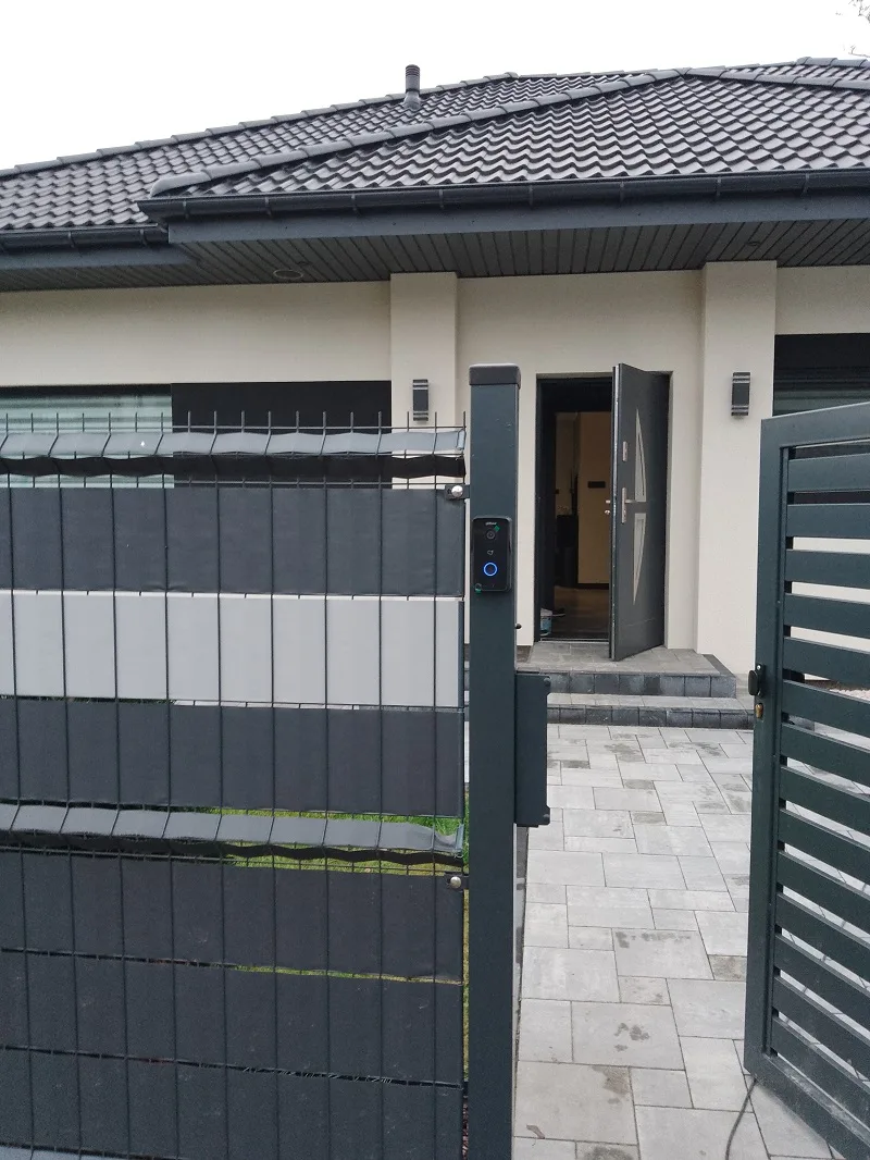 Zastosowany przez nas system wideodomofonowy umożliwia nie tylko wizualną identyfikację gości przed wejściem, ale także zdalne otwieranie furtki. Urządzenie zostało zintegrowane z aplikacją mobilną, co pozwala właścicielom obsługiwać wideodomofon z dowolnego miejsca – zarówno w domu, jak i poza nim.